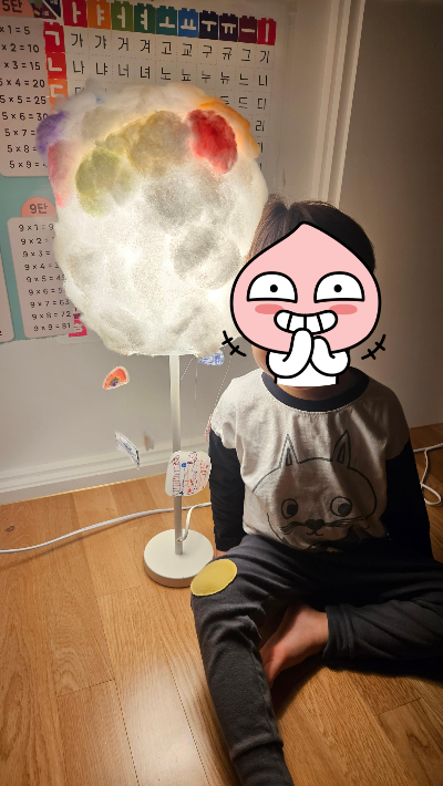 저희가 참여한 프로그램은 '구름'이라는 주제였는데요, 먼저 구름에 대해 함께 생각해 보고, 다양한 형태와 색의 구름을 관찰하는 시간을 가졌어요. 그다음에는 자신이 상상하는 구름 모양을 직접 그림으로 표현하고, 그걸 바로 모빌로 만들어 전시 공간에 걸어보는 활동으로 이어졌어요. 단순히 듣고 끝나는 수업이 아니라, 보고, 그리고, 만들고, 전시까지 해보는 전 과정이 포함되어 있어서 아이가 몰입하기에 충분했죠.