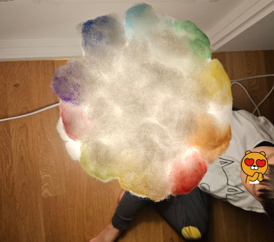 저희가 참여한 프로그램은 '구름'이라는 주제였는데요, 먼저 구름에 대해 함께 생각해 보고, 다양한 형태와 색의 구름을 관찰하는 시간을 가졌어요. 그다음에는 자신이 상상하는 구름 모양을 직접 그림으로 표현하고, 그걸 바로 모빌로 만들어 전시 공간에 걸어보는 활동으로 이어졌어요. 단순히 듣고 끝나는 수업이 아니라, 보고, 그리고, 만들고, 전시까지 해보는 전 과정이 포함되어 있어서 아이가 몰입하기에 충분했죠.